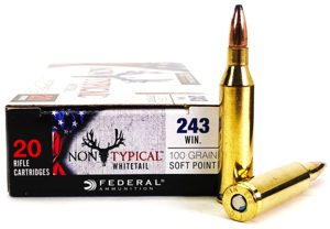 243 Win ammo for sale: 500rds Federal Premium 100gr Nontypical soft point online now, only $329.99. 2960 FPS devastating whitetail performance with controlled expansion. FREE shipping all 50 states – Order 243 deer hunting ammo today at GunExo.com!