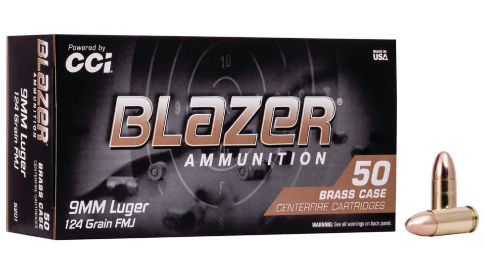 Specifications for CCI Ammunition Blazer Brass 9mm Luger 124 grain Full Metal Jacket Centerfire Pistol Ammunition: