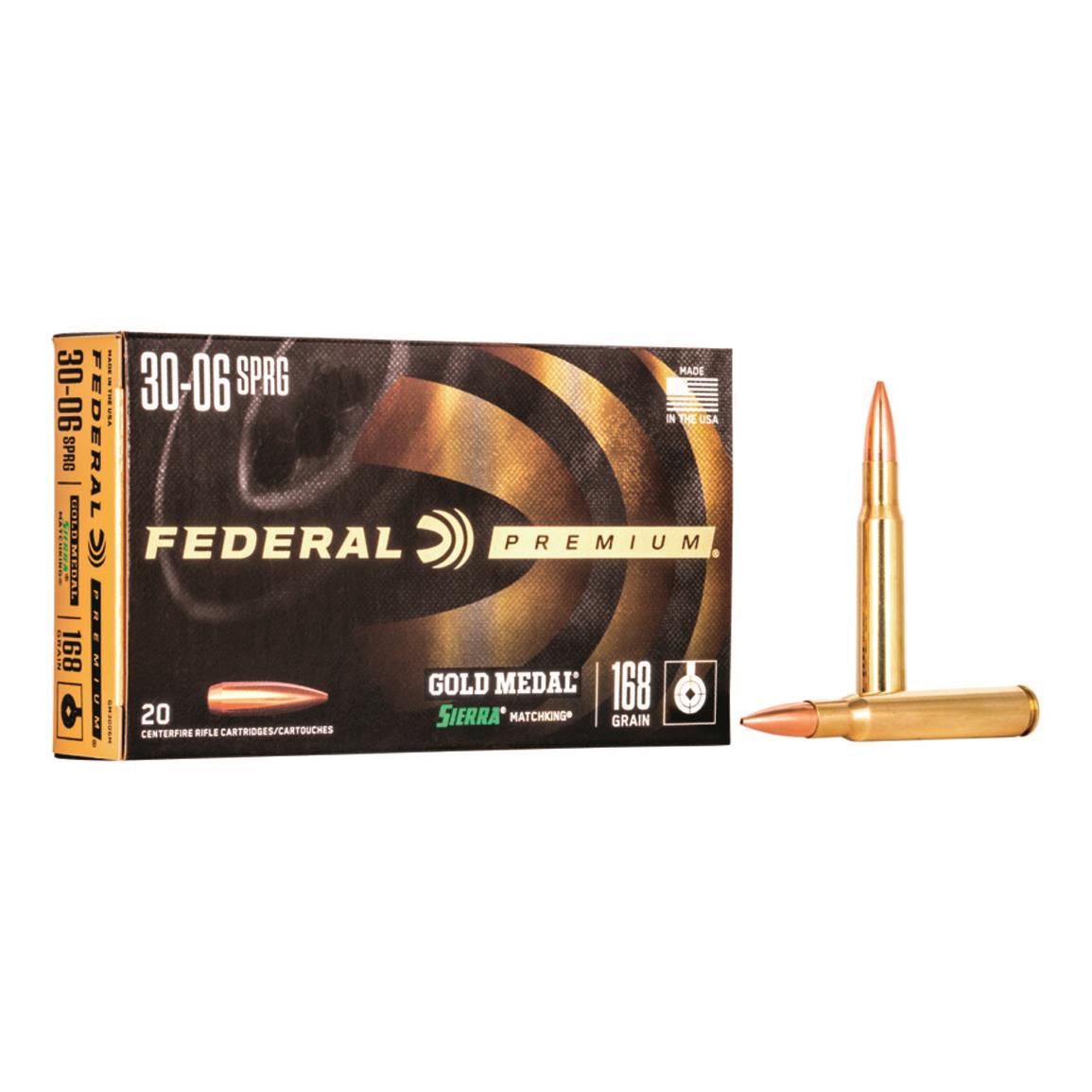 Federal Premium Gold Medal, .30-06 Springfield, Sierra MatchKing BTHP, 168 Grain Of 1000 Rounds